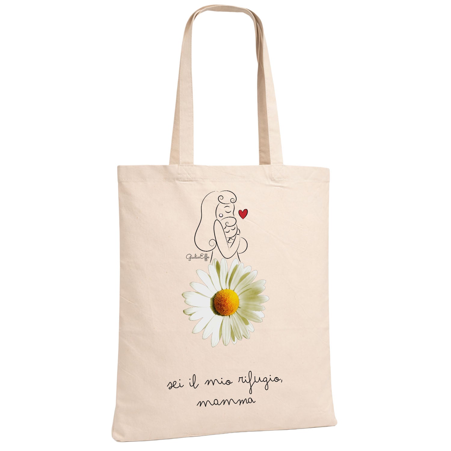 Eco-Friendly: Shopper Il tuo amore mi Guida mamma: Praticità e stile in un'unica soluzione. Cotone riciclato, chiusura a zaino, grafiche firmate