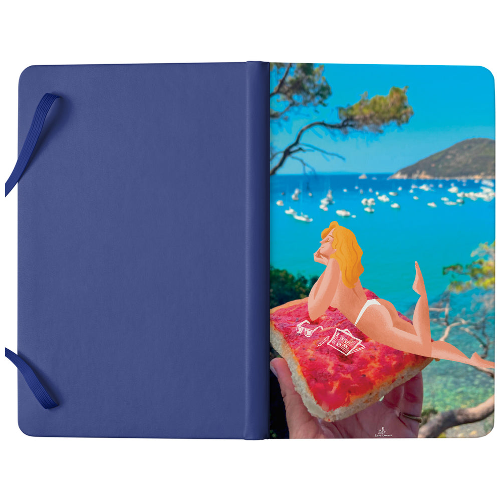 Taccuino Elba dell'album Taccuini per viaggiare (anche con la mente) di Elisa Lanconelli: copertina soft touch in 8 colori, con chiusura e segnalibro coordinati