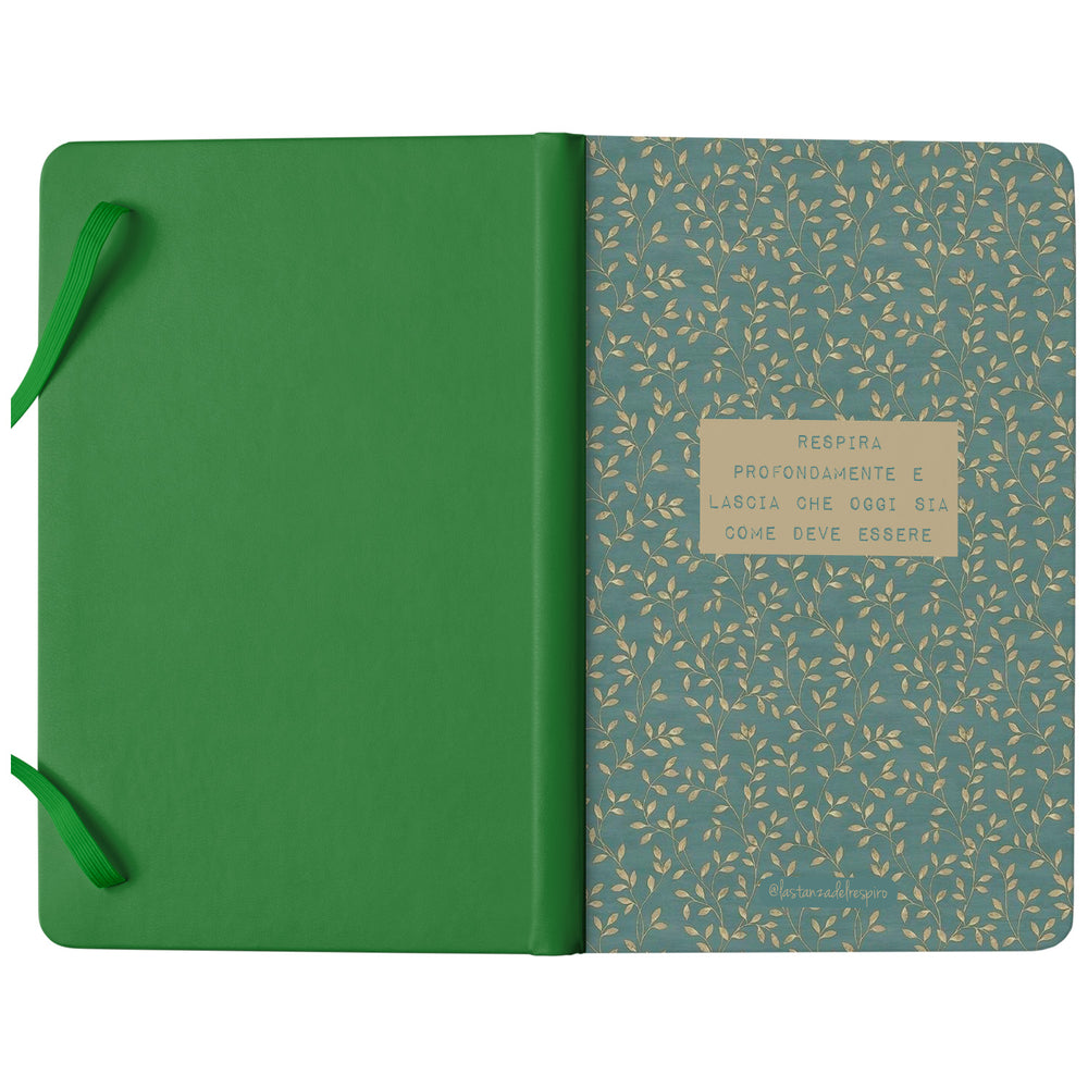 Taccuino Lascio che sia dell'album Un momento tutto per me di La stanza del respiro: copertina soft touch in 8 colori, con chiusura e segnalibro coordinati