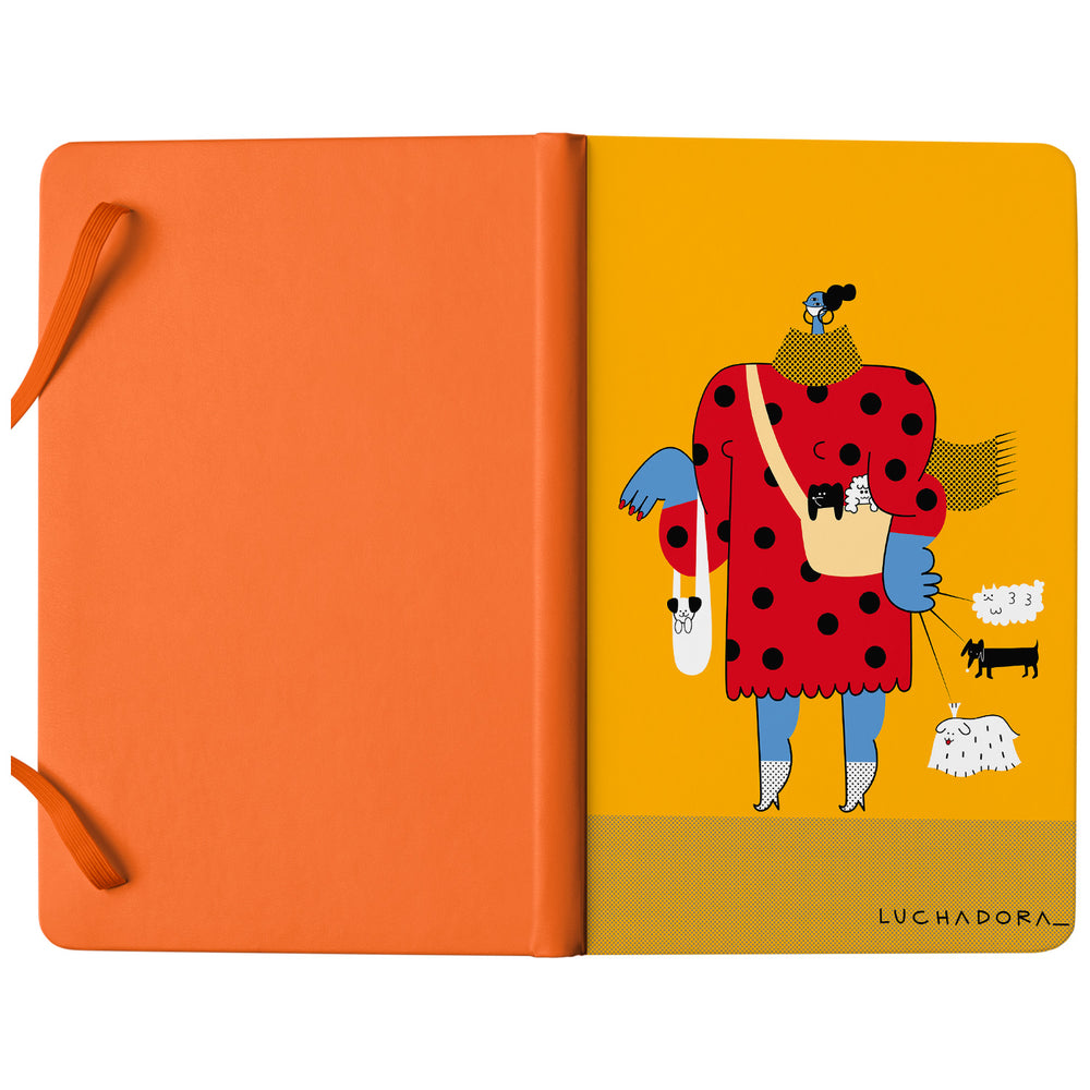 Taccuino Cagnolini dell'album TADAN! di LUCHADORA: copertina soft touch in 8 colori, con chiusura e segnalibro coordinati