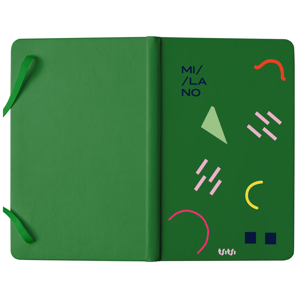 Taccuino MILANO dell'album Mapperó di TSITSI CONCEPT: copertina soft touch in 8 colori, con chiusura e segnalibro coordinati