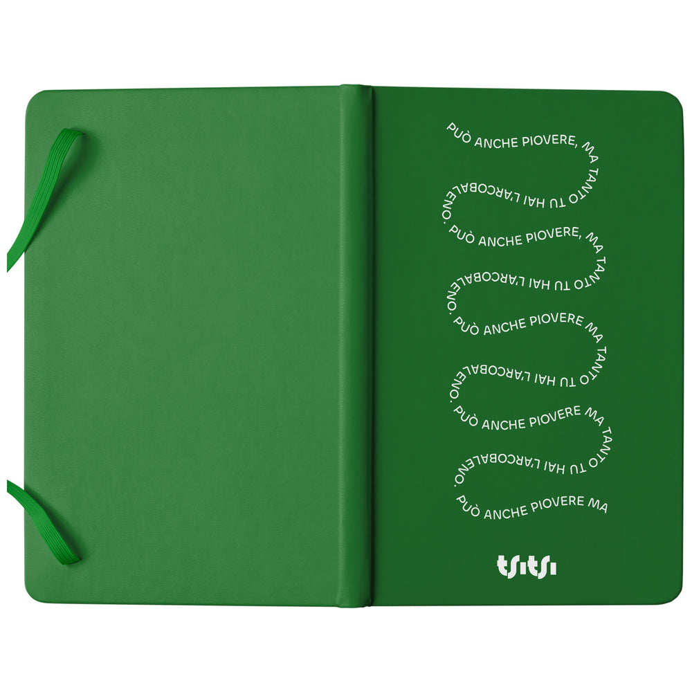 Taccuino Può anche piovere 02 dell'album Mapperó di TSITSI CONCEPT: copertina soft touch in 8 colori, con chiusura e segnalibro coordinati